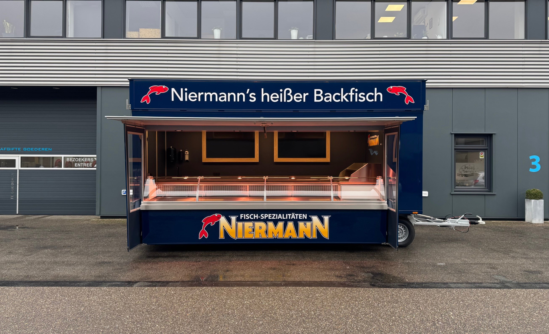 Verkoopwagen voor verse en gebakken vis